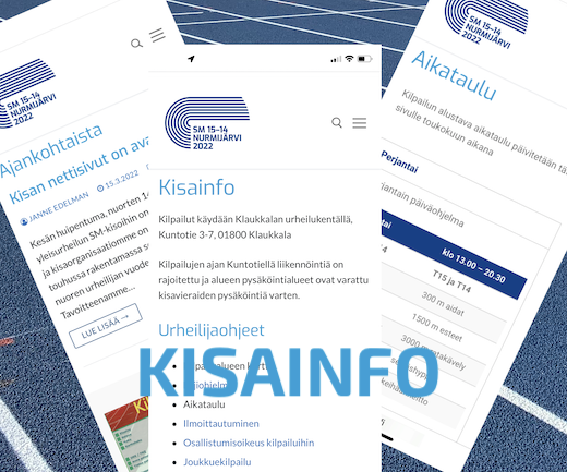 Nurmijärven Yleisurheilu toivottaa kaikki tervetulleeksi Nurmijärvelle. Klaukkalan urheilukentällä kamppailtiin yleisurheilun Suomen mestaruuksista edellisen kerran vuonna 1996 eli 26 vuotta sitten. Nyt kannattaa tulla paikan päälle kokemaan kisahuumaa ja luomaan nuorille yleisurheilijoille ikimuistoinen kilpailutapahtuma.