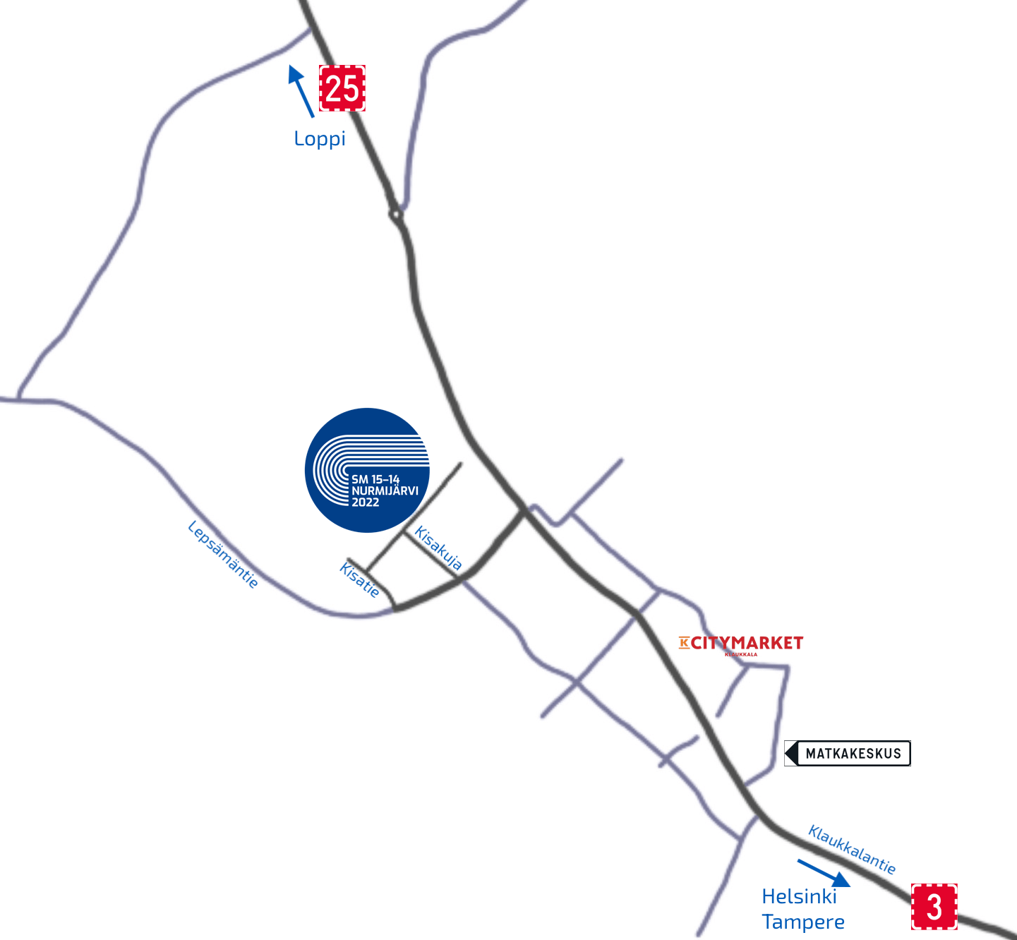 Klaukkalan urheilualue sijaitsee 5,5 km valtatie 3:n liittymästä numero 11 sijaitsevassa Klaukkalan taajamassa. Napsauta karttaa tarkastellaksesi sitä lähemmin.